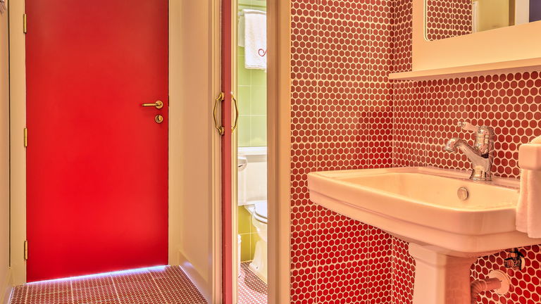 The rooms have analogue telephones, fringe lamps, vintage fans, themed neon lighting, a mirror with a personalised phrase above the bed, and seedily seductive lighting that will make the entire hotel glow in red.