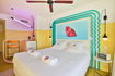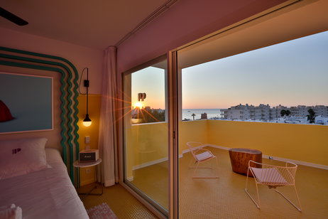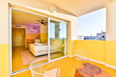 Each of the rooms the hotel has Marshall loudspeakers, Smeg fridge and a very colorful furniture characteristic of the 70's.