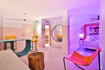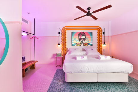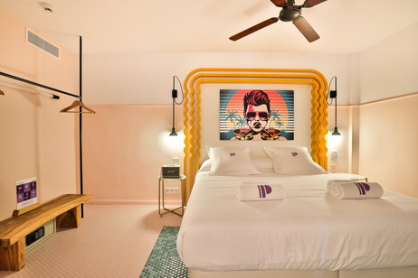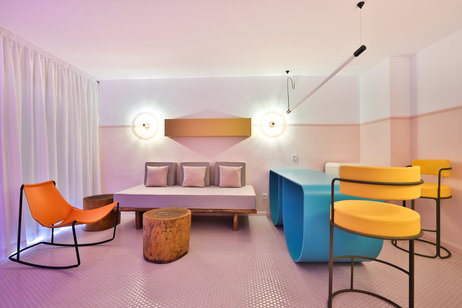 Each of the rooms at the hotel has Marshall loudspeakers, Smeg fridge and a very colorful furniture characteristic of the 70's.