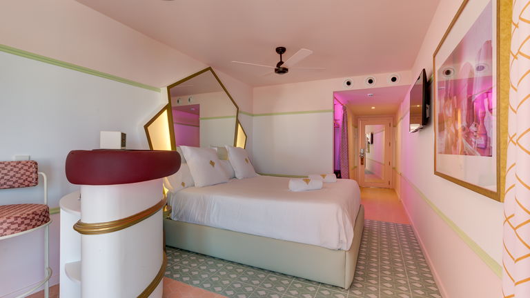 Disponibles 2 camas individuales o 1 cama doble, bajo petición y sujeto a disponibilidad. Las Suites también disponen de 1 sofá camas a disposición de los huéspedes.
