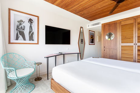 Perfecta para una escapada en buena compañÃa, esta habitación tiene balcón y dispone de todos los extras que te puedes imaginar: Minibar, altavoces Marshall, Smart TV…y todo con ese toque chic del estilo mid-century.Â
