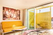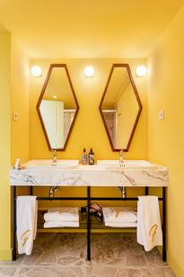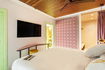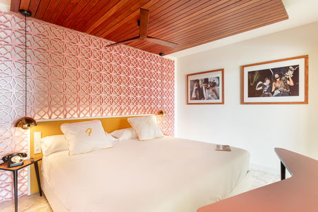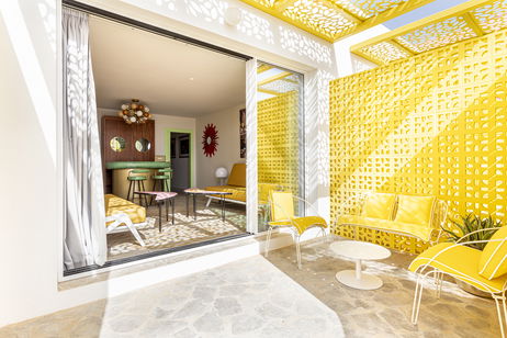 La joya de la corona es esta habitación, de la que sólo hay seis unidades. Dedicadas a seis grandes diseñadores/as del firmamento de la moda, cada una de nuestras villas dispone de acceso privado desde la piscina, terraza equipada con mobiliario exterior, una barra para disfrutar de un buen cóctel, altavoces Marshall, Minibar y sofá cama, al más puro estilo Palm Springs.